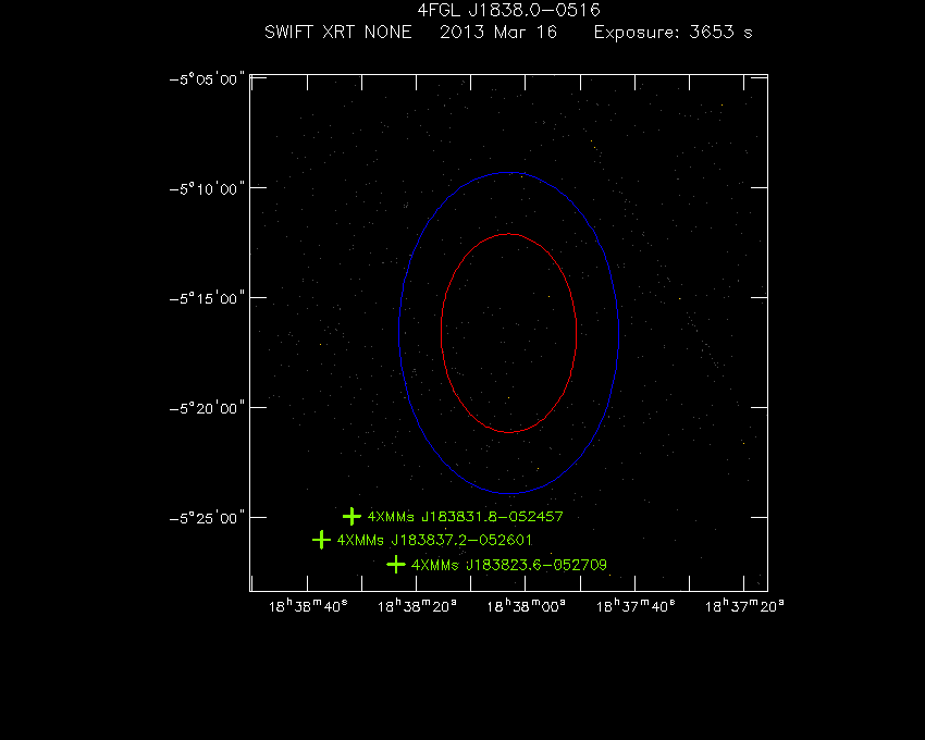 Swift-XRT image of the field for 4FGL J1838.0-0516 Swift-XRT detections in the field for 4FGL J1838.0-0516